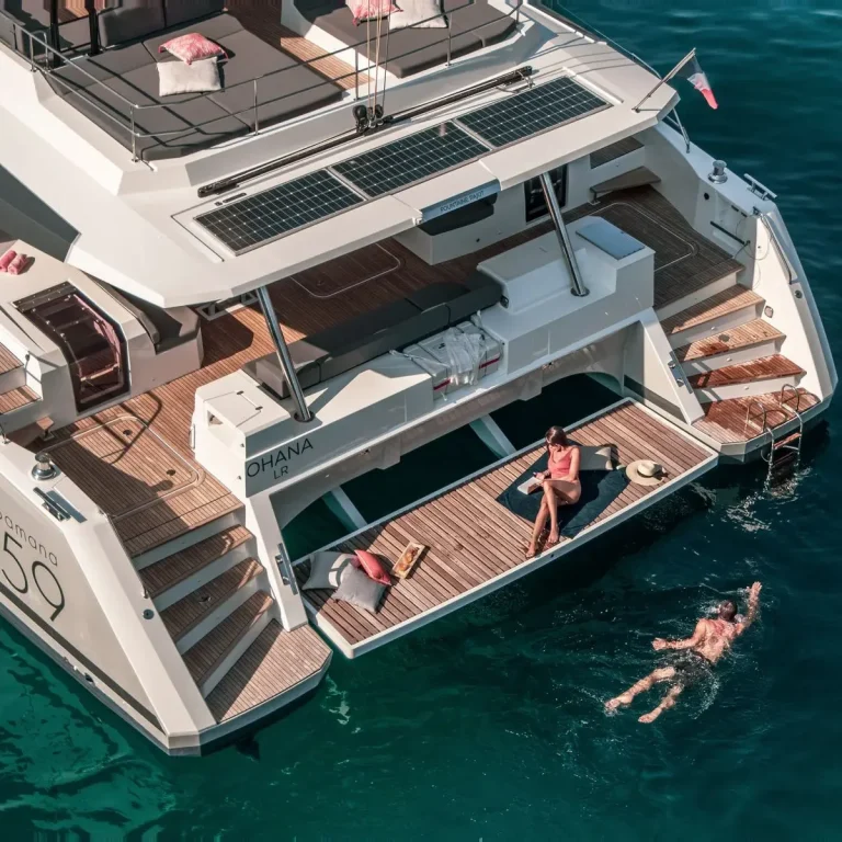 La plateforme arrière et les jupes rallongées sont idéales pour profiter des sports nautiques, et de bons moments conviviaux en famille ou entre amis.