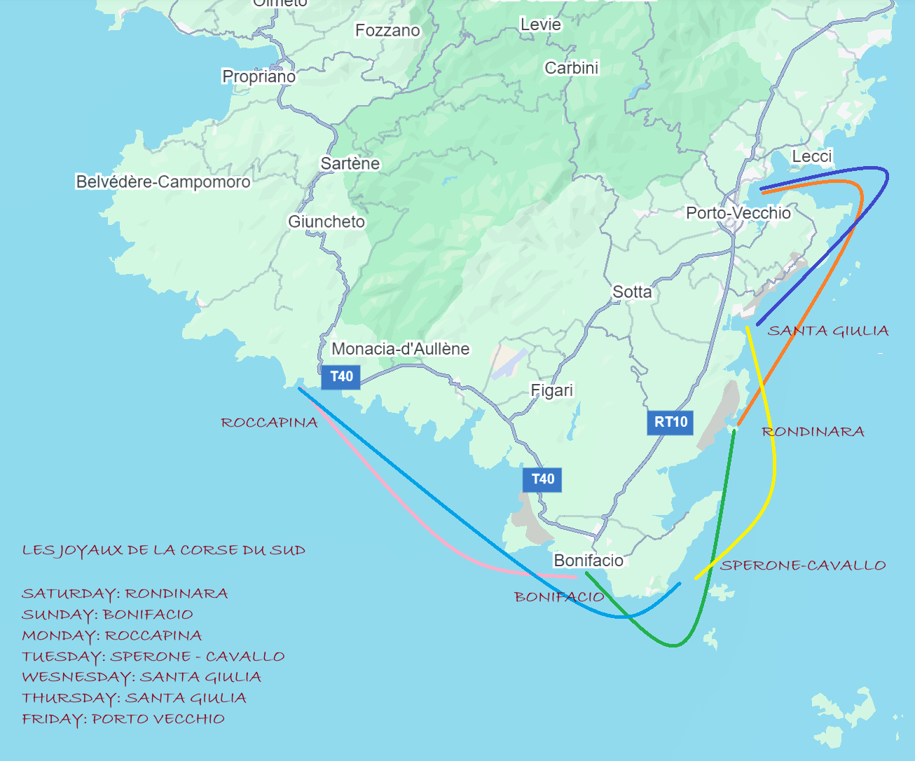 Découvrez la beauté époustouflante du sud de la Corse à bord de notre croisière inoubliable. Au cours de cette aventure, vous explorerez des destinations emblématiques, à commencer par la sublime plage de Rondinara, célèbre pour ses eaux cristallines et son sable fin. Nous poursuivrons notre voyage en direction de Bonifacio, avec ses falaises majestueuses et son port impressionnant, offrant des paysages à couper le souffle. Ensuite, nous jetterons l'ancre à Roccapina, un charmant village où vous pourrez savourer la cuisine locale et profiter des boutiques pittoresques. Enfin, nous nous dirigerons vers Spérone, un majestueux site naturel qui combine paysages spectaculaires et histoire fascinante. Chaque destination est une invitation à la détente et à l'émerveillement, faisant de cette croisière un véritable rêve éveillé.